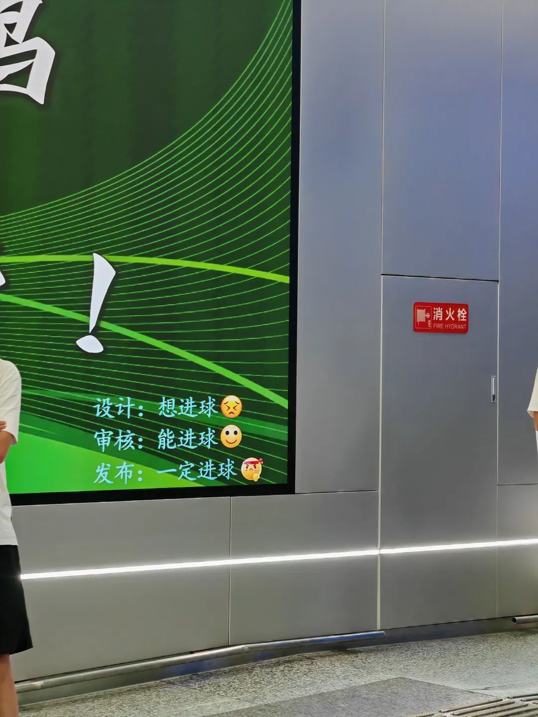 值得注意的是,应援屏设计发布者的署名为“想进球、能进球、一定进球”。很多旅客看到屏幕不自觉地放慢脚步,先是疑惑地眯起眼睛,待领会到其中幽默后,笑着拍照。