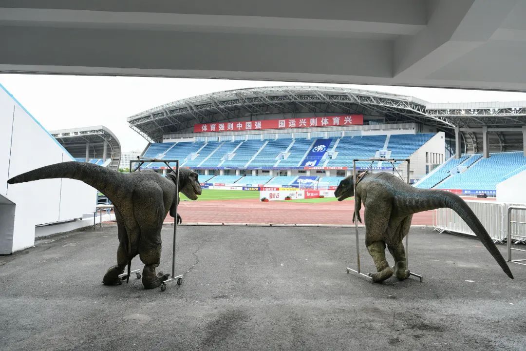 21日,常州从中华恐龙园拉来20多只“恐龙”助阵,常州文旅官方抖音号在赛前将头像换成了单手比1的龙。